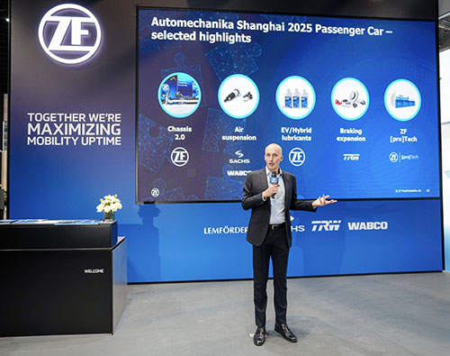 马克斯.维蒂希(Markus Wittig)在致辞中表示:“当前乘用车后市场正被三大核心趋势—重塑软件化、电动化与可持续发展,而采埃孚售后的产品组合正引领这场变革。在上海法兰克福汽配展上,我们集中展示了如何通过创新直面这些趋势:我们提供的不仅是零部件,更是一体化解决方案 — 为乘用车领域重新定义高效、可靠与可持续的服务标准。本届展会再次印证了我们的使命:以端到端的产品服务矩阵引领行业发展,为合作伙伴赋能,为消费者创造价值。”