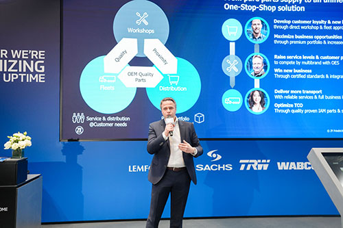 亚历山大.列夫诺维奇(Aleksander Rabinovitch)则强调:“本次法兰克福汽配展,采埃孚售后商用车板块带来多项重磅创新成果,全面展示我们从全球领先的零部件供应商向商用车一站式解决方案提供商的战略转型。通过与经销商,维修厂和车队的深度合作,我们致力于构建更具韧性的行业生态,提升客户忠诚度,开拓全新业务增长点,携手驱动商用车后市场高质量发展。”