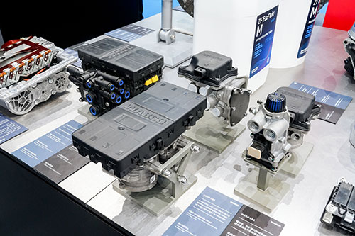 在商用车领域,以 “安全、省钱、无忧、环保”焕新“智能高效” 体验,携制动系统、传动系统,悬架系统,轮端系统解决方案四大核心产品线共18件创新展品亮相展会。iEBS模块化挂车智能电子制动系统具备主挂协同控制能力,符合 ECE 标准并提供 ABS、EBS 和防侧翻等安全功能,可有效防止侧翻、推头和甩尾,并兼容智能挂车及自动驾驶系统,预计将在中国、日本、韩国实现量产并满足售后加装需求;iEBS模块化挂车智能电子制动系统具备主挂协同控制能力,符合 ECE 标准并提供 ABS、EBS 和防侧翻等安全功能,可有效防止侧翻、推头和甩尾,并兼容智能挂车及自动驾驶系统,预计将在中国、日本、韩国实现量产并满足售后加装需求;第二代电子空气处理单元总成,可有效降低油耗,结构更紧凑,并可监控干燥罐状态,显著提升气路系统可靠性,提供一站式维修解决方案包括:空气干燥器、多回路保护阀和ECU;机械自动变速箱(AMT)控制器维修包,涵盖集成式AMT控制器(iAMT)和模块化AMT控制器(OptiDrive),为新一代AMT解决方案的售后维修提供支持。