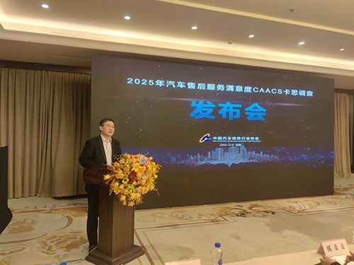 2025年12月9日上午,由中国汽车维修行业协会主办的2025年汽车售后服务客户满意度调查(CAACS卡思调查)发布会在北京国家会议中心成功举行。中国汽车维修行业协会副会长兼汽车制造企业售后服务分会会长盖方、秘书长底彦彬、副秘书长康学楠、行业发展部主任赵军、汽车制造企业售后服务分会秘书长蔡永升出席发布会。各乘用车和商用车主机厂售后服务负责人、行业专家及媒体代表齐聚一堂,共同见证调查成果发布。
